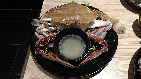 是偏軟殼的螃蟹,硬殼的部分有事先被剪開,方便食用